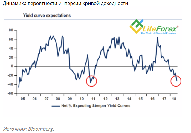 Джером Пауэлл – не единственный человек в мире, который проявляет беспокойство по поводу торговых войн. Согласно опросу управляющих активами на $542 млрд, проведенному BofA Merrill Lynch, 60% респондентов считают именно этот фактор главной угрозой для финансовых рынков. В июне речь шла о 31%. Банк отмечает также рост вероятности инверсии кривой доходности в течение следующих 12 месяцев до 33%, что является максимальным показателем с 2011. Напомню, что по мнению «голубей» FOMC, ФРС следует сделать паузу в процессе нормализации денежно-кредитной политики по причине наличия исторической связи между уходом кривой доходности в красную зону и рецессией.